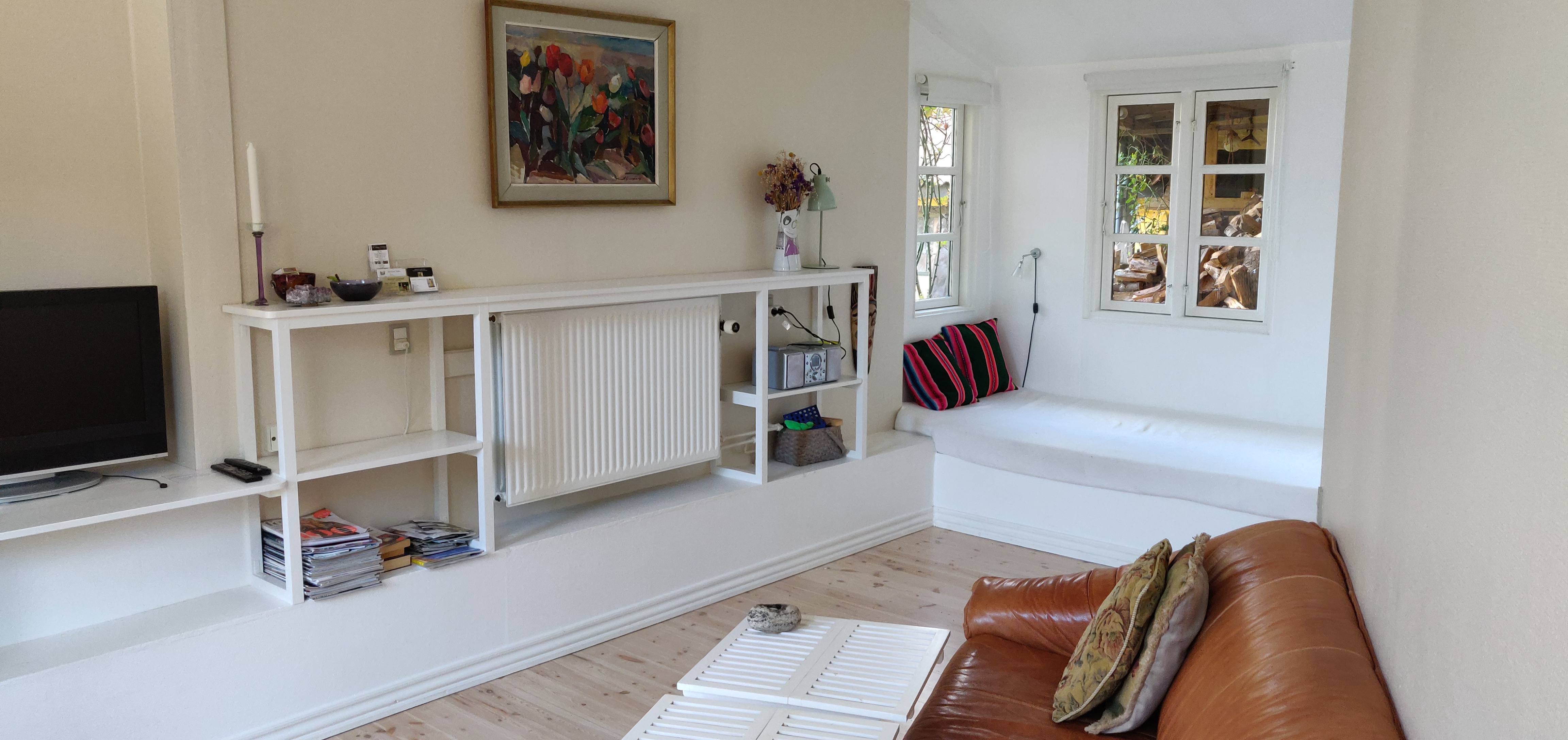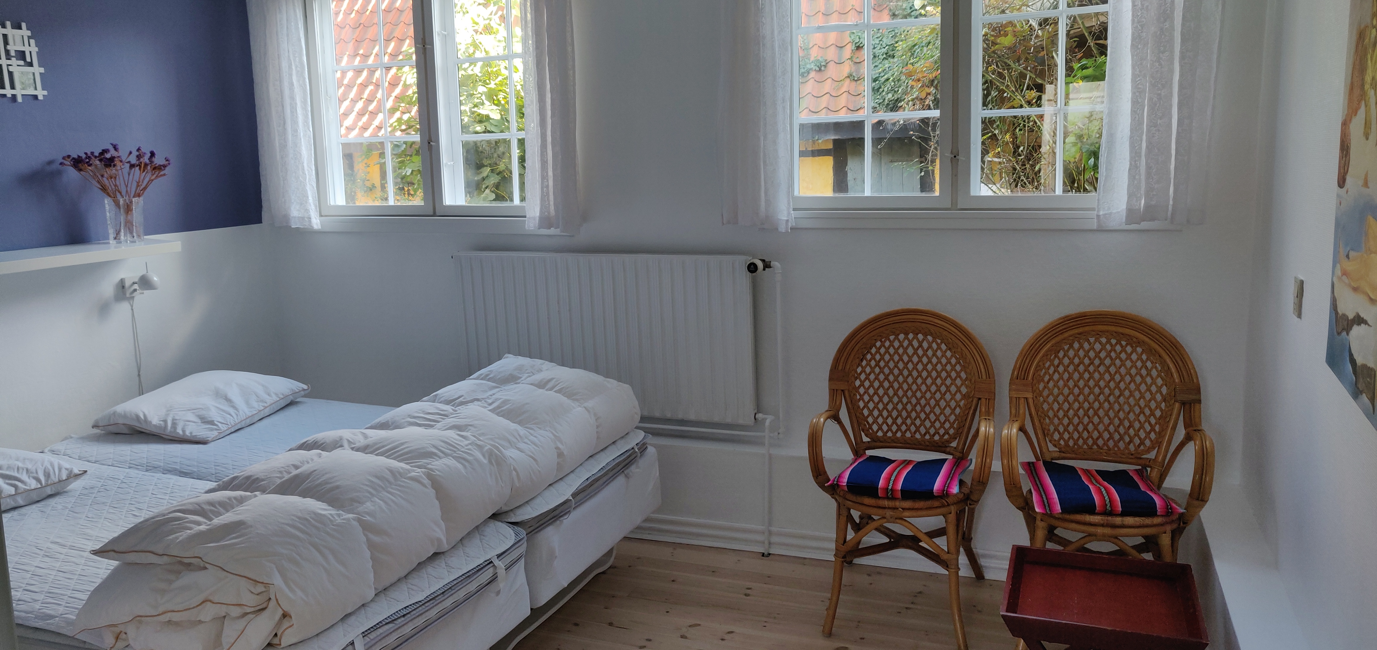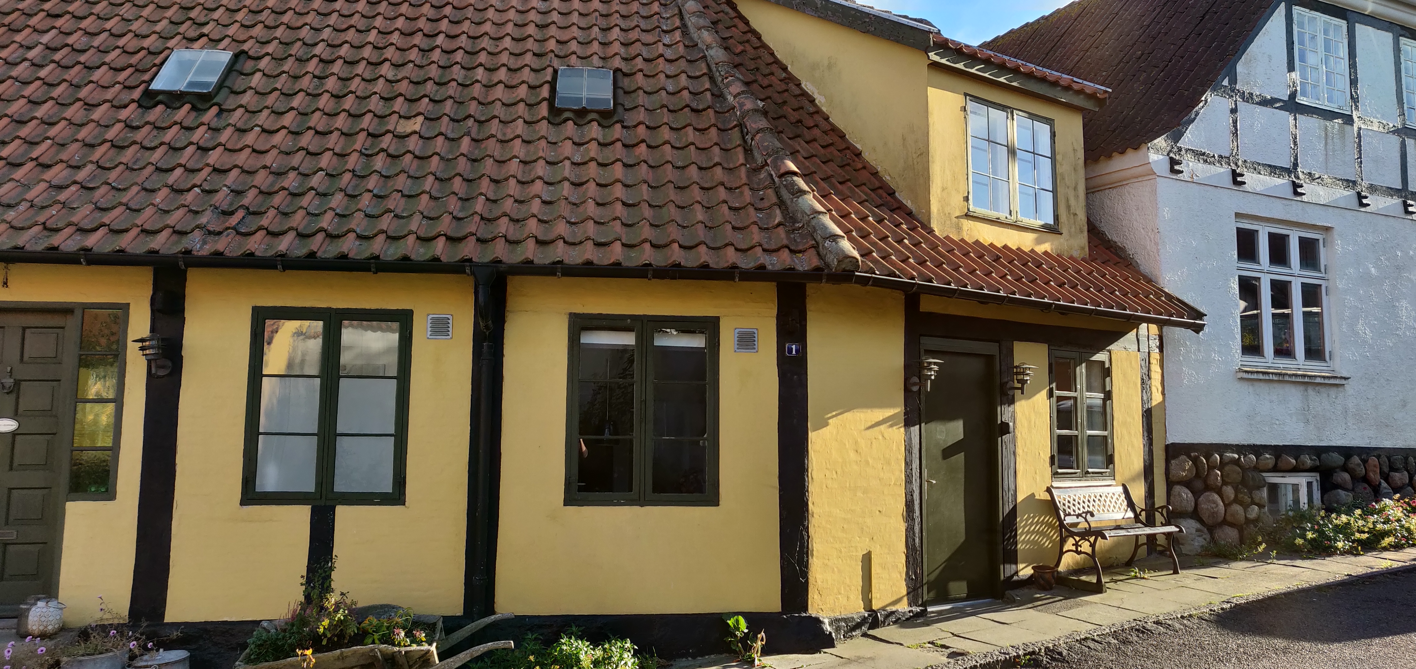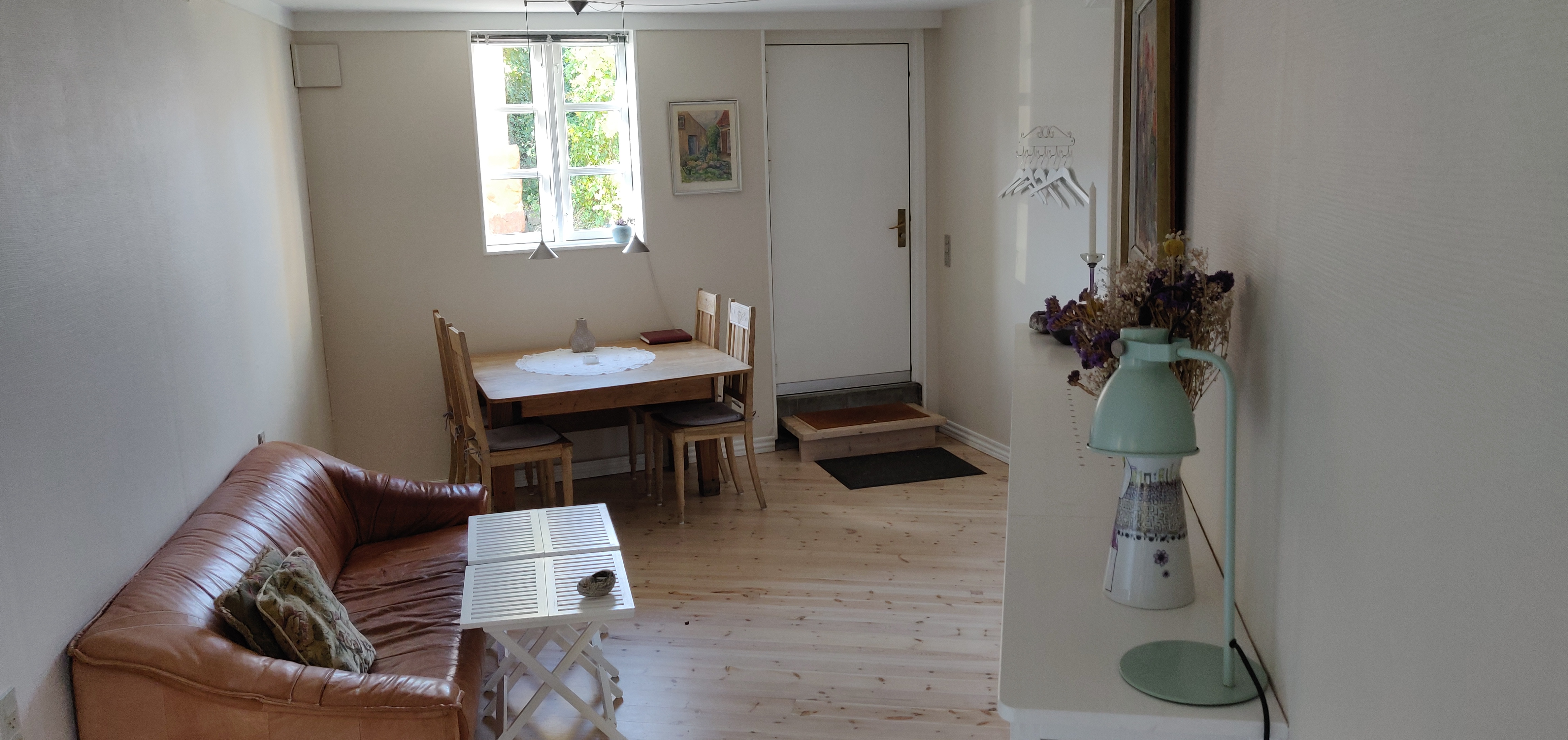 Vores lejlighed er ca 70 m2. Den er beliggende i den gamle del af Allinge, ca 100 m. fra den smukke klippekyst og det bedste røgeri. Vores hus er bygget i 1820. Lejligheden ligger i forlængelse af huset. Der er ca. 300 m. til en dejlig lille strand.